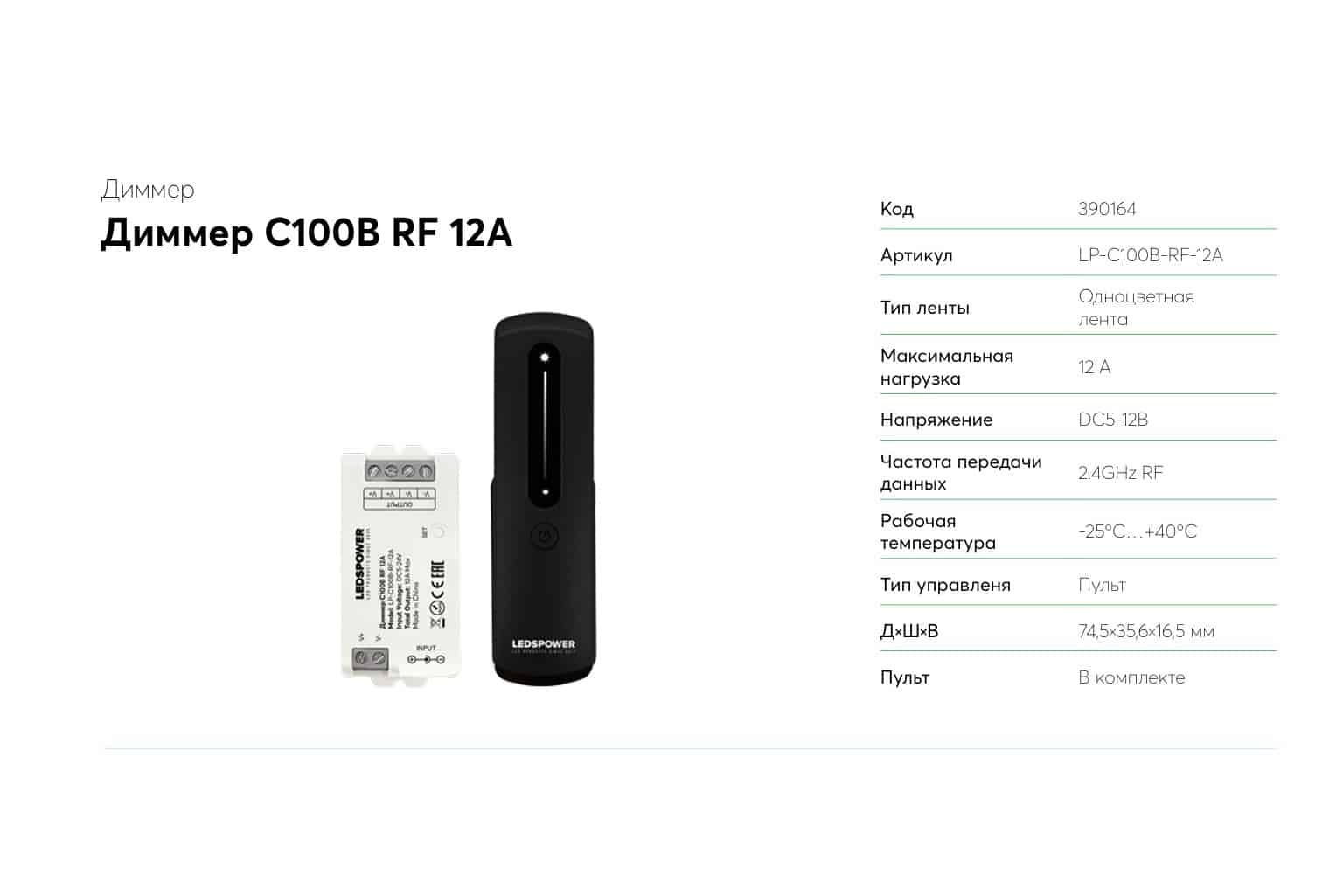 Диммер С100B RF 12A (144-288W) с пультом, чёрный | Leds Power
